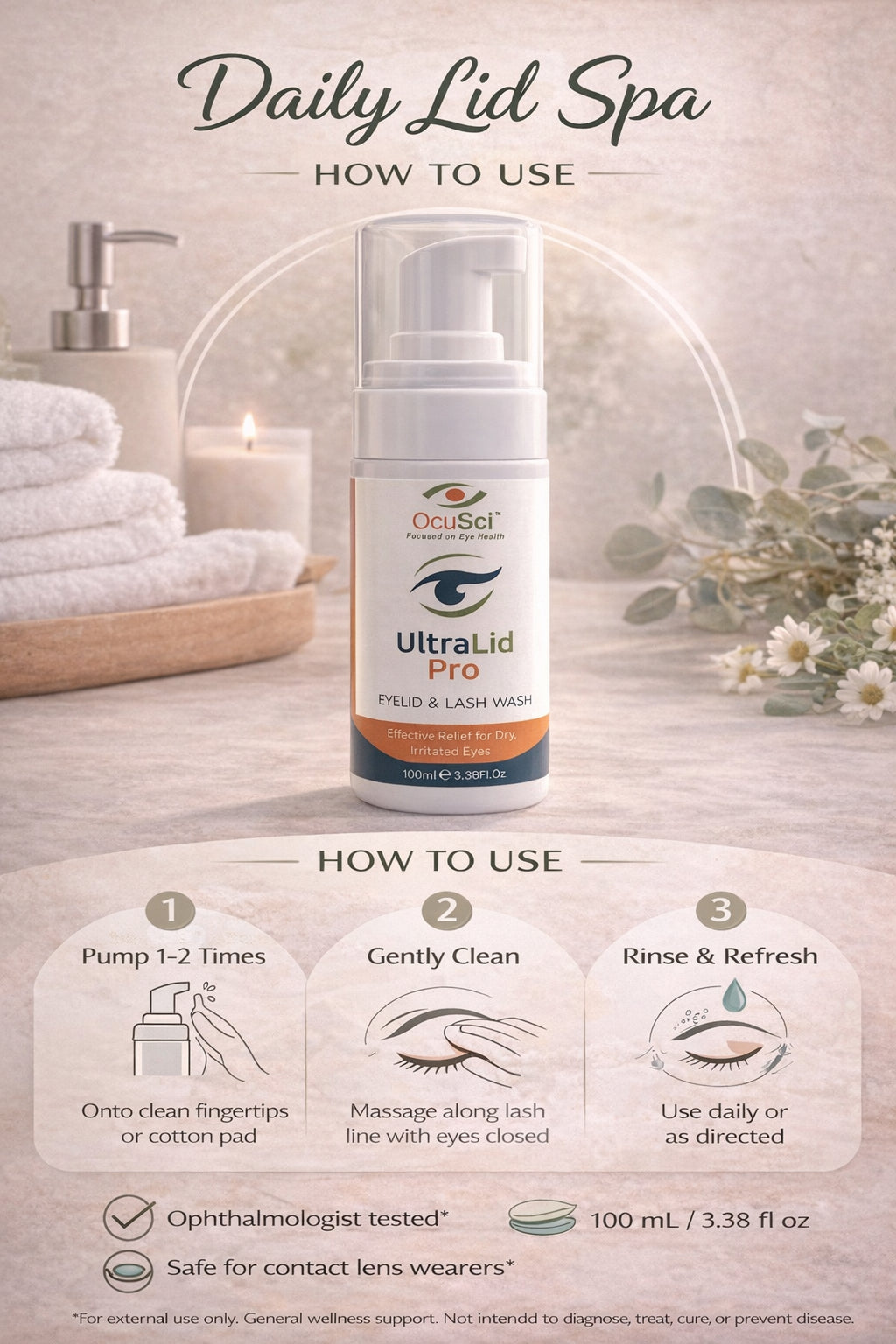 • Foaming, spa-like cleanser designed for the delicate eyelid margin
